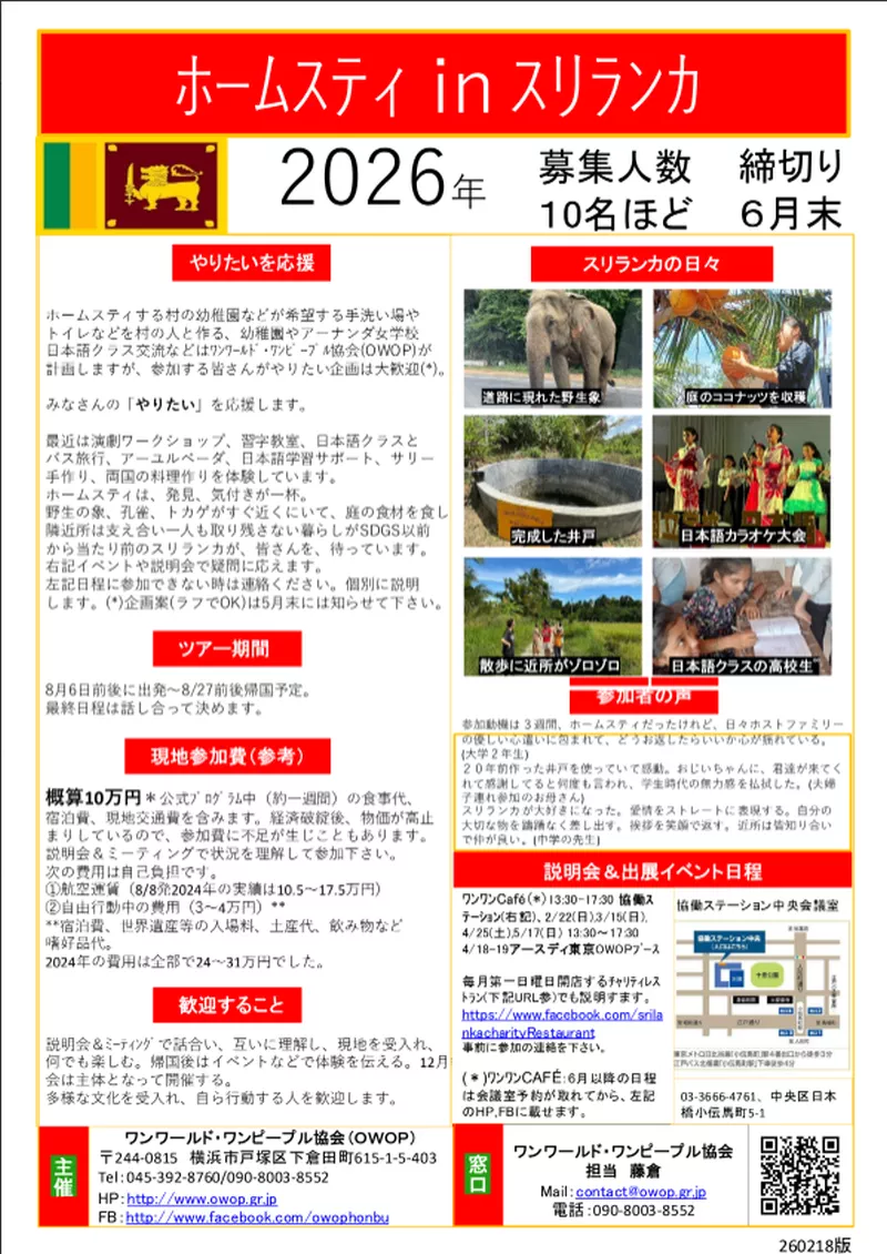 2026年「OWOPホームステイinスリランカ」ツアーを、一緒に楽しく作っていけることが嬉しいです!